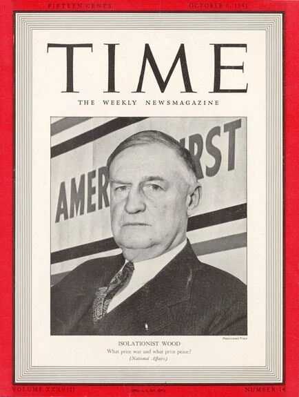 The AFC was committed to opposing America’s entry into the war, and spread anti-Soviet, anti-British and isolationist propaganda among the American people. The AFC grew out of a student antiwar organization, led by R. Douglas Stuart, Jr., son of the first vice-president of the Quaker Oats Company. With Charles Lindbergh’s advice, Stuart sought the support of General Robert Wood, then Chairman of Sears Roebuck Prior to Pearl Harbor, and an apologist for Hitler. In 1940, the AFC was incorporated, and Wood became its first chairman. John Foster Dulles wrote the charter.[104] Funding was supplied from a few millionaires such as William H. Regnery, H. Smith Richardson of the Vick Chemical Company, publisher Joseph M. Patterson of the New York Daily News and his cousin, Robert R. McCormick, publisher of the Chicago Tribune, a member of the SOSJ.[105] Its leading members included Henry Ford, and American physician, Dr. William Sohier Bryant, a member of the Shickshinny Knights and an associate of Brasol.[106]