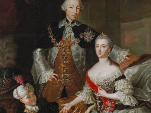 Catherine the Great (1729 – 1796) with her husband Tsar Peter III, and son Paul I, who would later rule Tsar from 1796 to 1801.